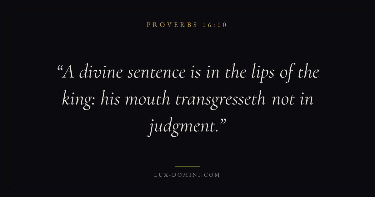 A divine sentence is in the lips of the king: his mouth transgresseth not in judgment.