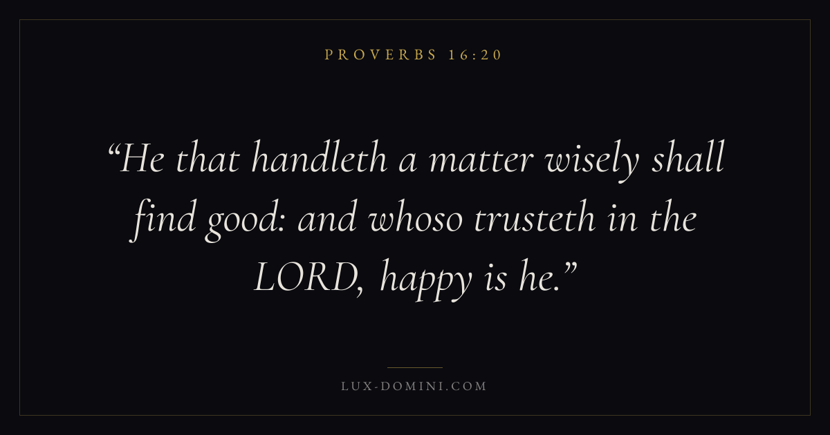 He that handleth a matter wisely shall find good: and whoso trusteth in the LORD, happy is he.