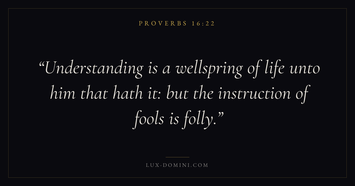 Understanding is a wellspring of life unto him that hath it: but the instruction of fools is folly.