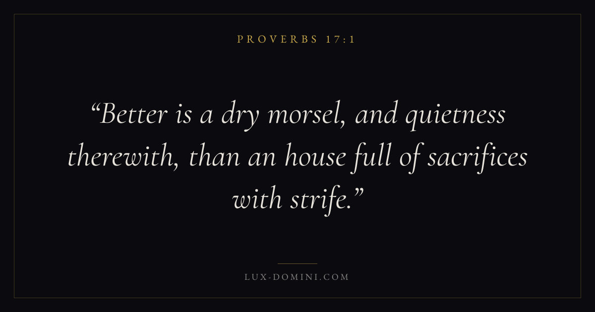 Better is a dry morsel, and quietness therewith, than an house full of sacrifices with strife.