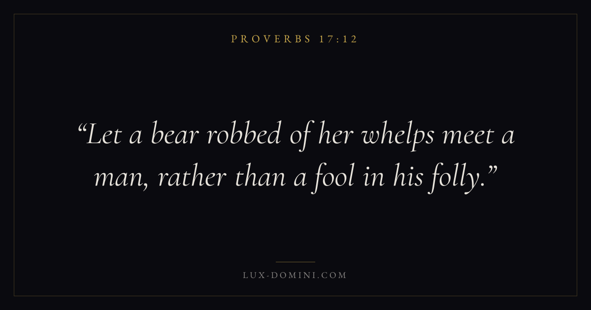 Let a bear robbed of her whelps meet a man, rather than a fool in his folly.