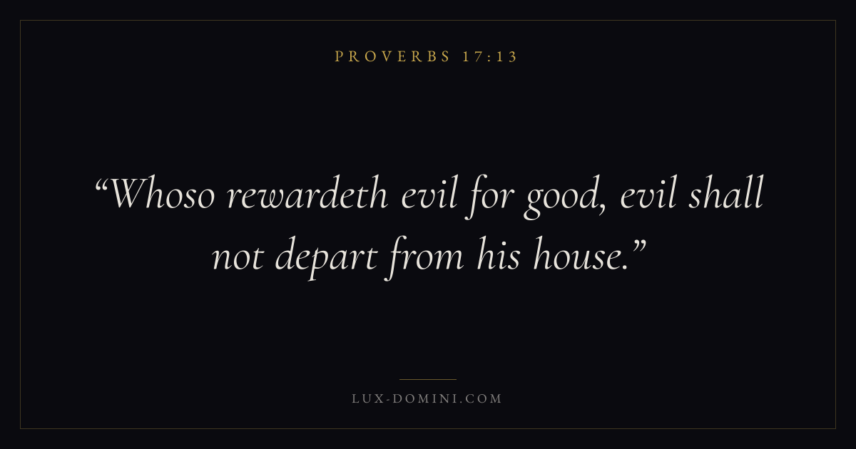 Whoso rewardeth evil for good, evil shall not depart from his house.