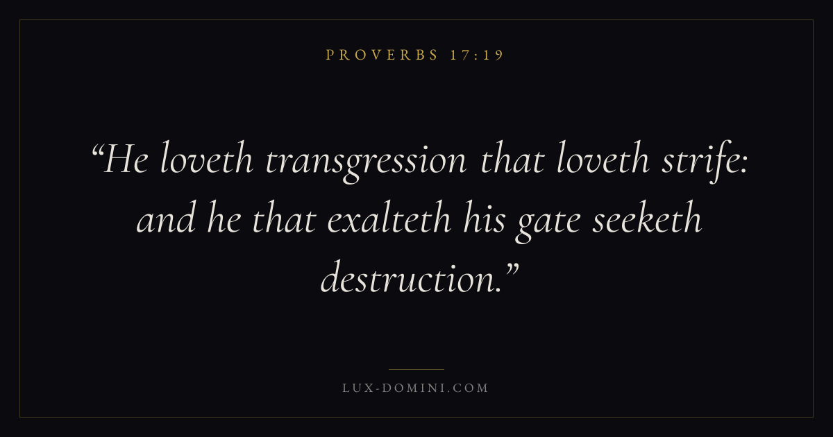 He loveth transgression that loveth strife: and he that exalteth his gate seeketh destruction.