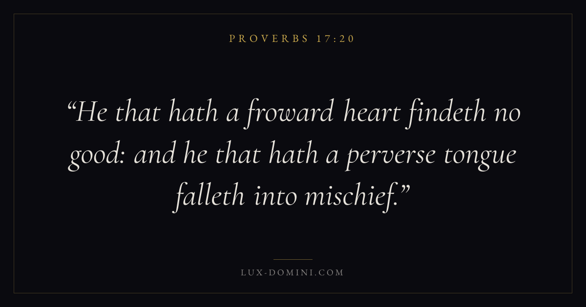 He that hath a froward heart findeth no good: and he that hath a perverse tongue falleth into mischief.
