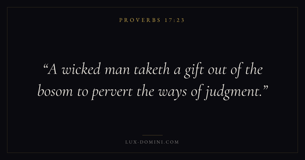 A wicked man taketh a gift out of the bosom to pervert the ways of judgment.