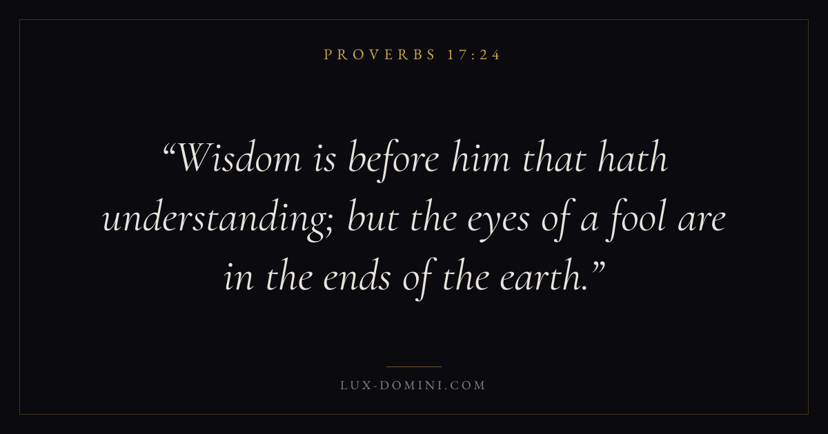 Wisdom is before him that hath understanding; but the eyes of a fool are in the ends of the earth.