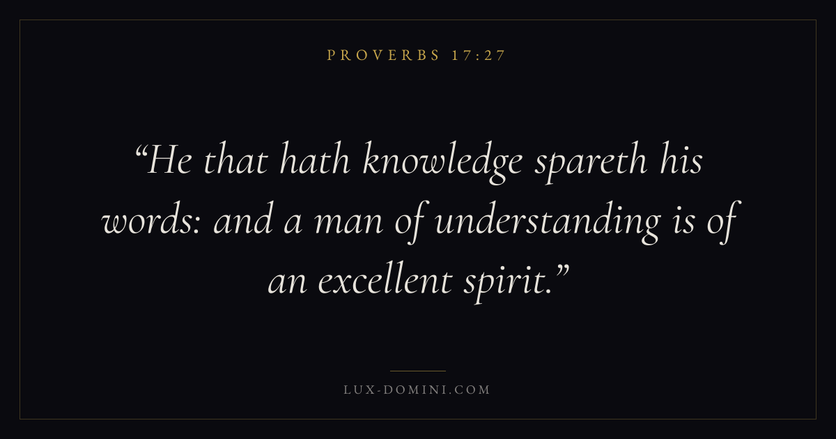 He that hath knowledge spareth his words: and a man of understanding is of an excellent spirit.