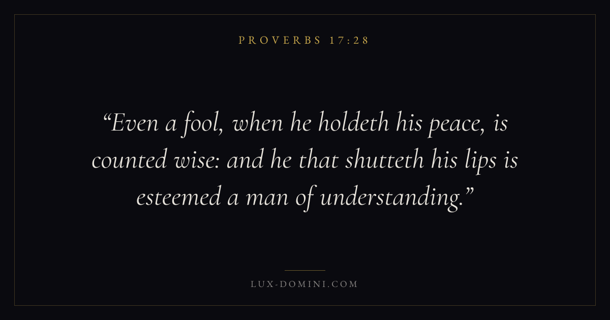 Even a fool, when he holdeth his peace, is counted wise: and he that shutteth his lips is esteemed a man of understanding.