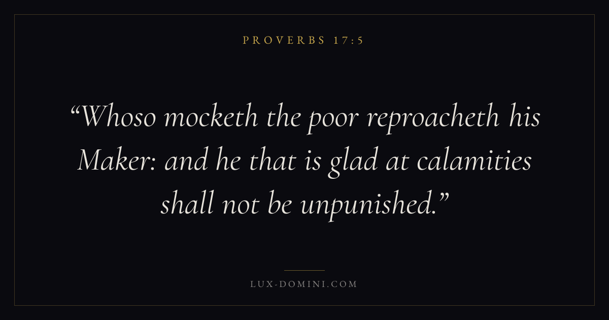 Whoso mocketh the poor reproacheth his Maker: and he that is glad at calamities shall not be unpunished.