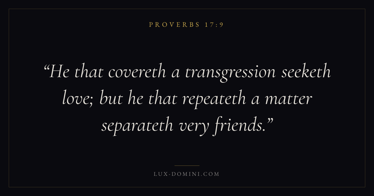 He that covereth a transgression seeketh love; but he that repeateth a matter separateth very friends.