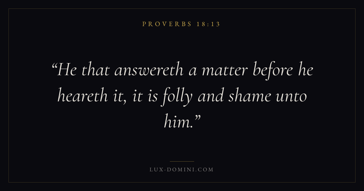 He that answereth a matter before he heareth it, it is folly and shame unto him.