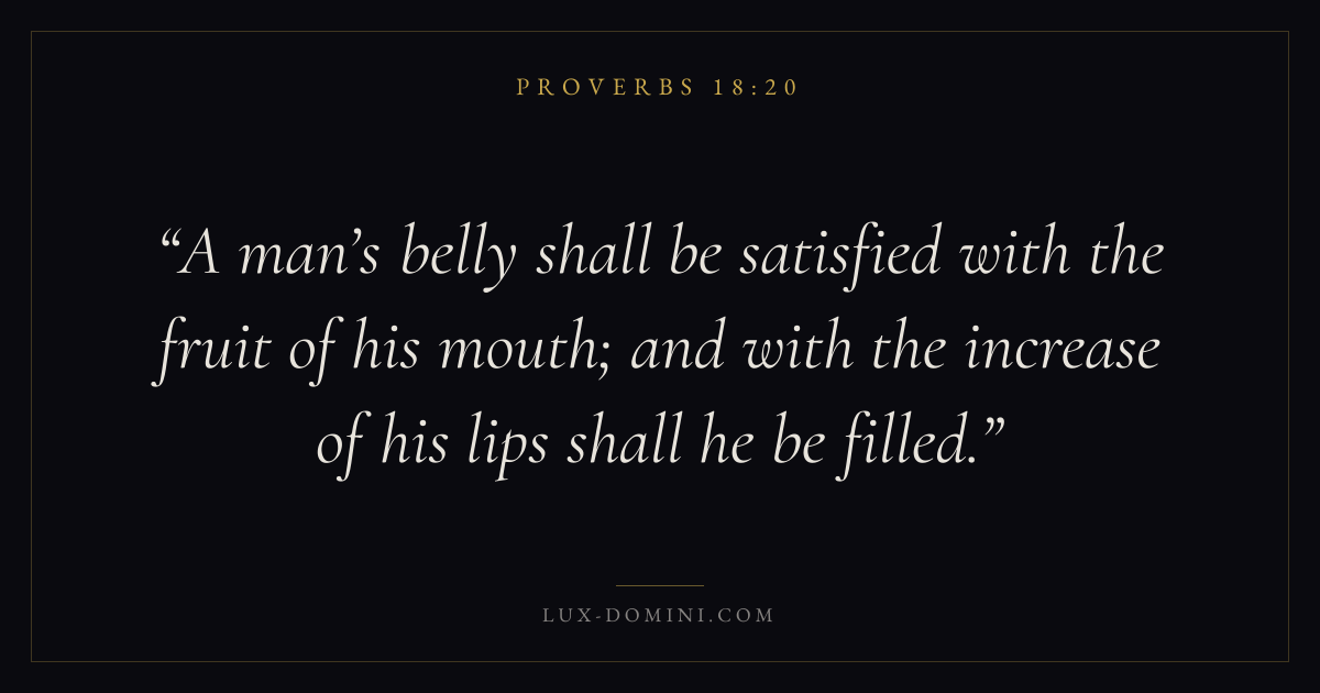 A man’s belly shall be satisfied with the fruit of his mouth; and with the increase of his lips shall he be filled.