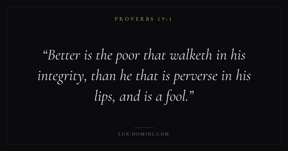 Better is the poor that walketh in his integrity, than he that is perverse in his lips, and is a fool.