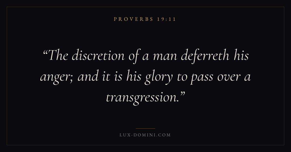 The discretion of a man deferreth his anger; and it is his glory to pass over a transgression.