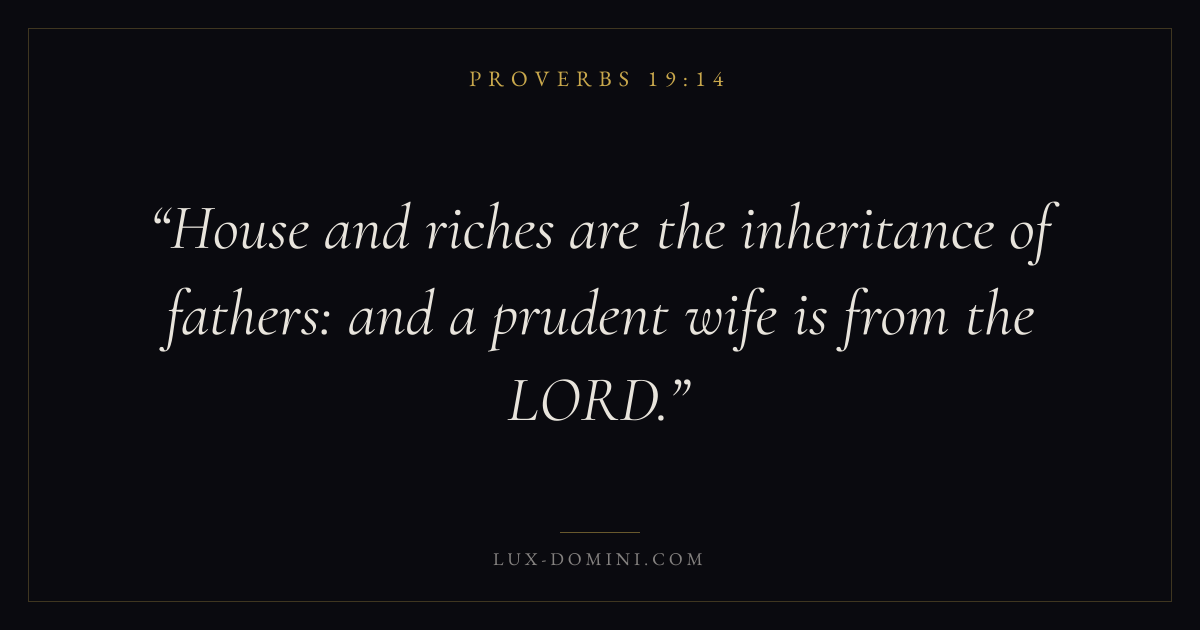 House and riches are the inheritance of fathers: and a prudent wife is from the LORD.