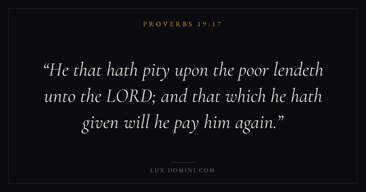 He that hath pity upon the poor lendeth unto the LORD; and that which he hath given will he pay him again.