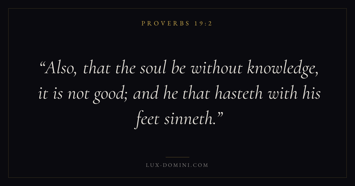 Also, that the soul be without knowledge, it is not good; and he that hasteth with his feet sinneth.