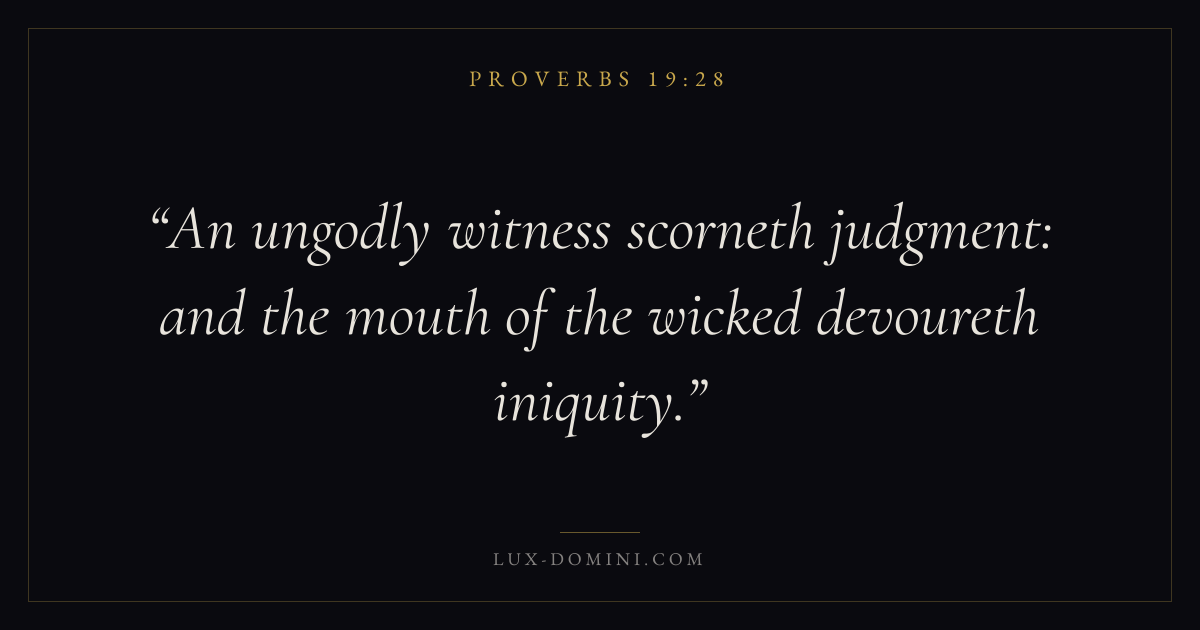 An ungodly witness scorneth judgment: and the mouth of the wicked devoureth iniquity.