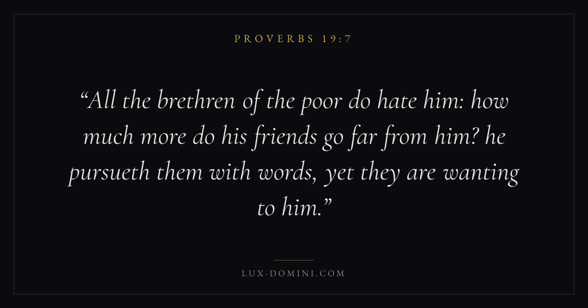 All the brethren of the poor do hate him: how much more do his friends go far from him? he pursueth them with words, yet they are wanting to him.