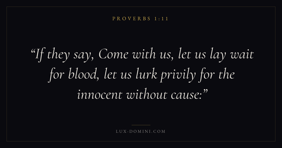 If they say, Come with us, let us lay wait for blood, let us lurk privily for the innocent without cause: