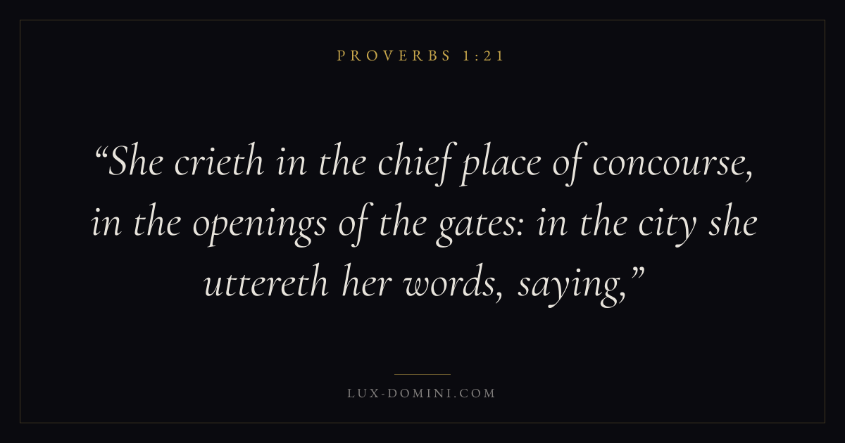 She crieth in the chief place of concourse, in the openings of the gates: in the city she uttereth her words, saying,