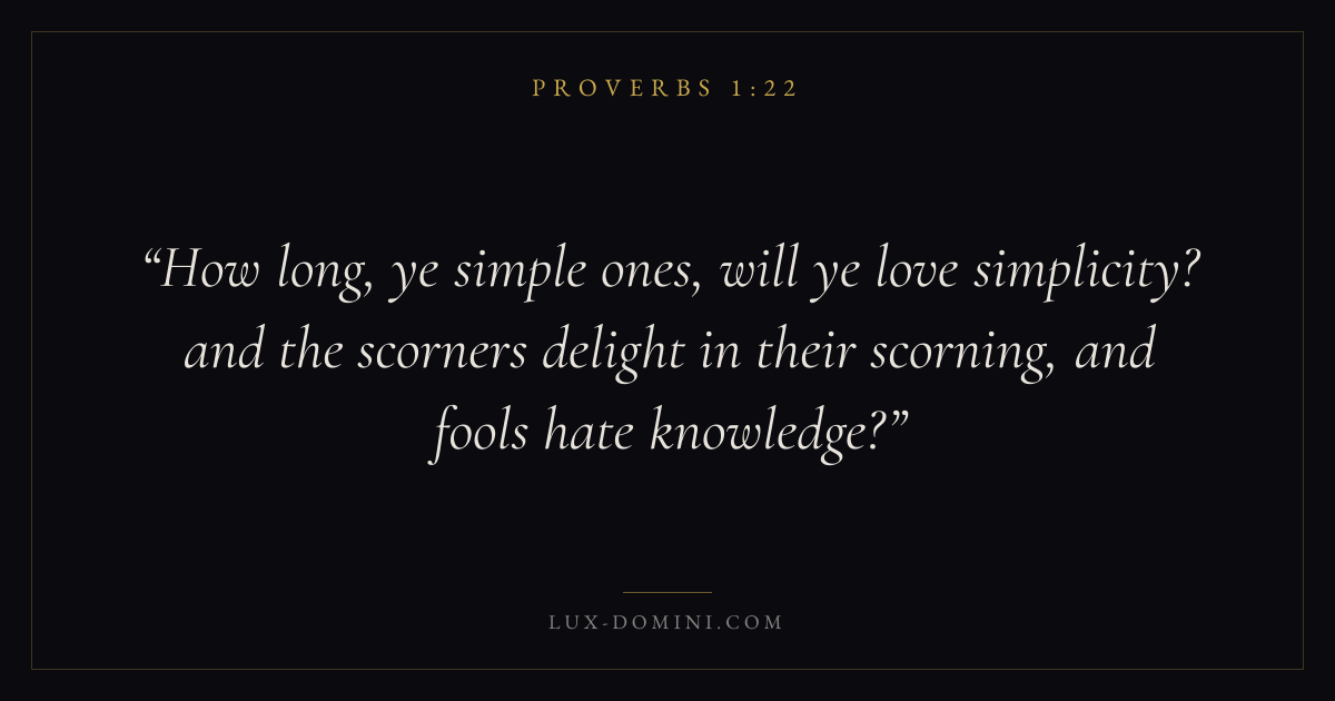 How long, ye simple ones, will ye love simplicity? and the scorners delight in their scorning, and fools hate knowledge?
