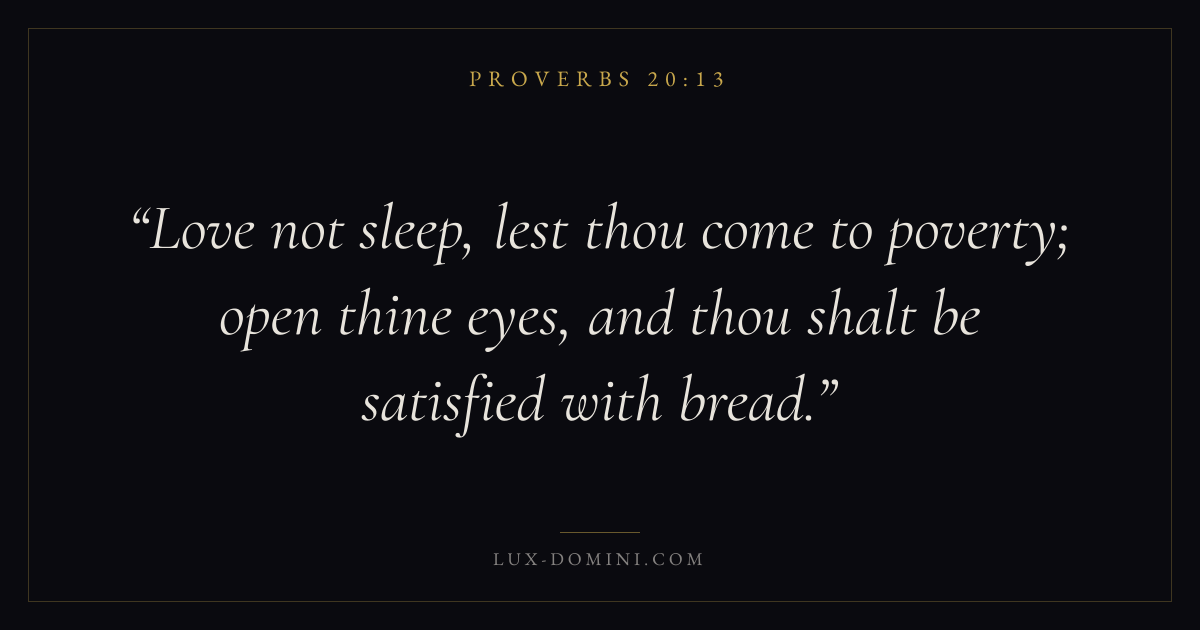 Love not sleep, lest thou come to poverty; open thine eyes, and thou shalt be satisfied with bread.