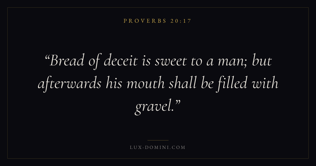 Bread of deceit is sweet to a man; but afterwards his mouth shall be filled with gravel.
