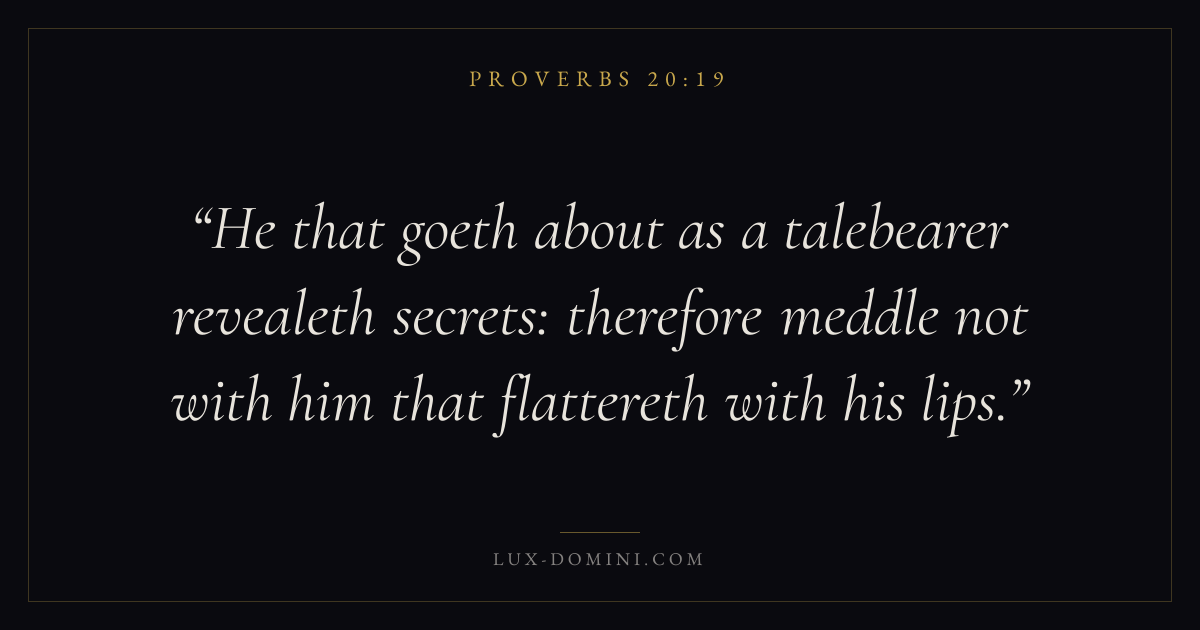 He that goeth about as a talebearer revealeth secrets: therefore meddle not with him that flattereth with his lips.