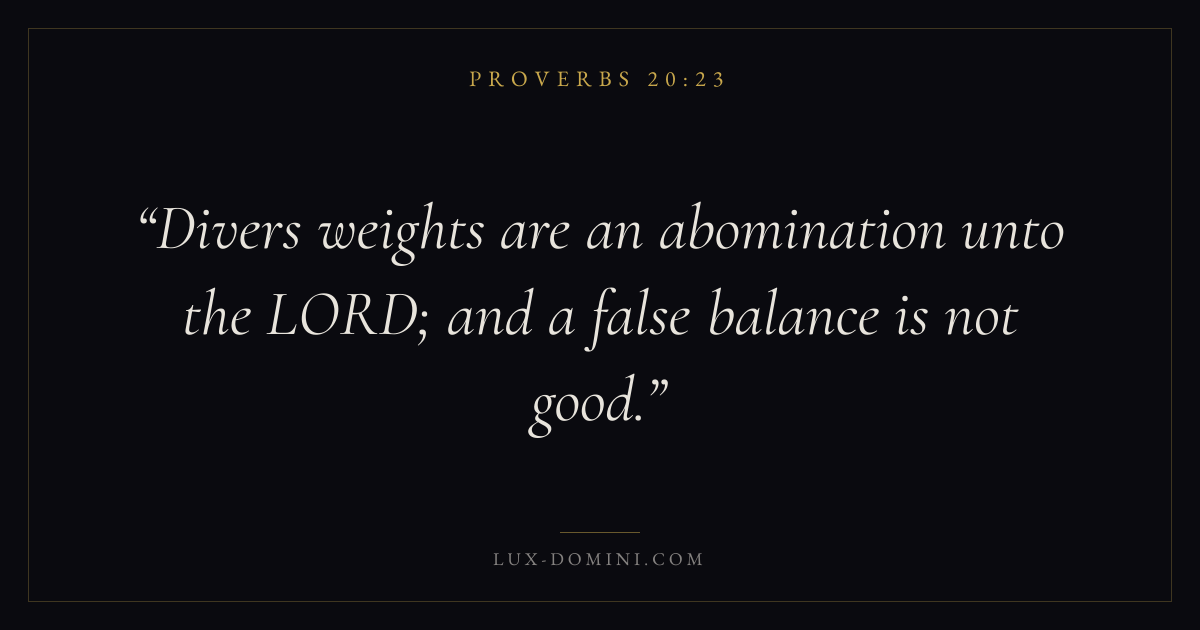 Divers weights are an abomination unto the LORD; and a false balance is not good.