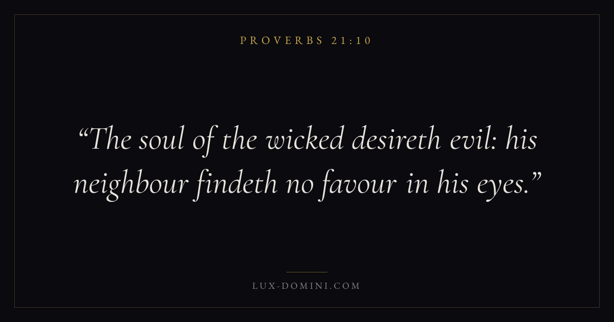 The soul of the wicked desireth evil: his neighbour findeth no favour in his eyes.