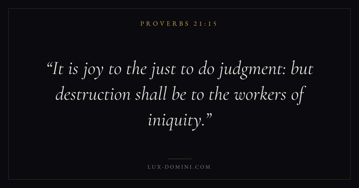 It is joy to the just to do judgment: but destruction shall be to the workers of iniquity.