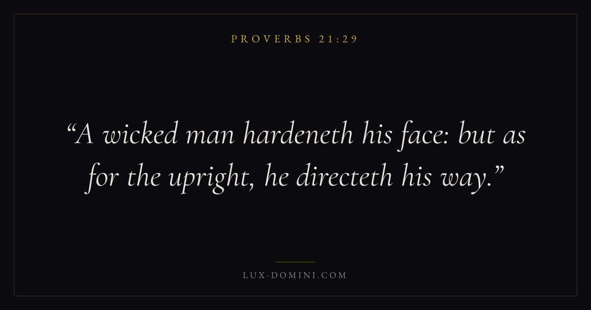 A wicked man hardeneth his face: but as for the upright, he directeth his way.