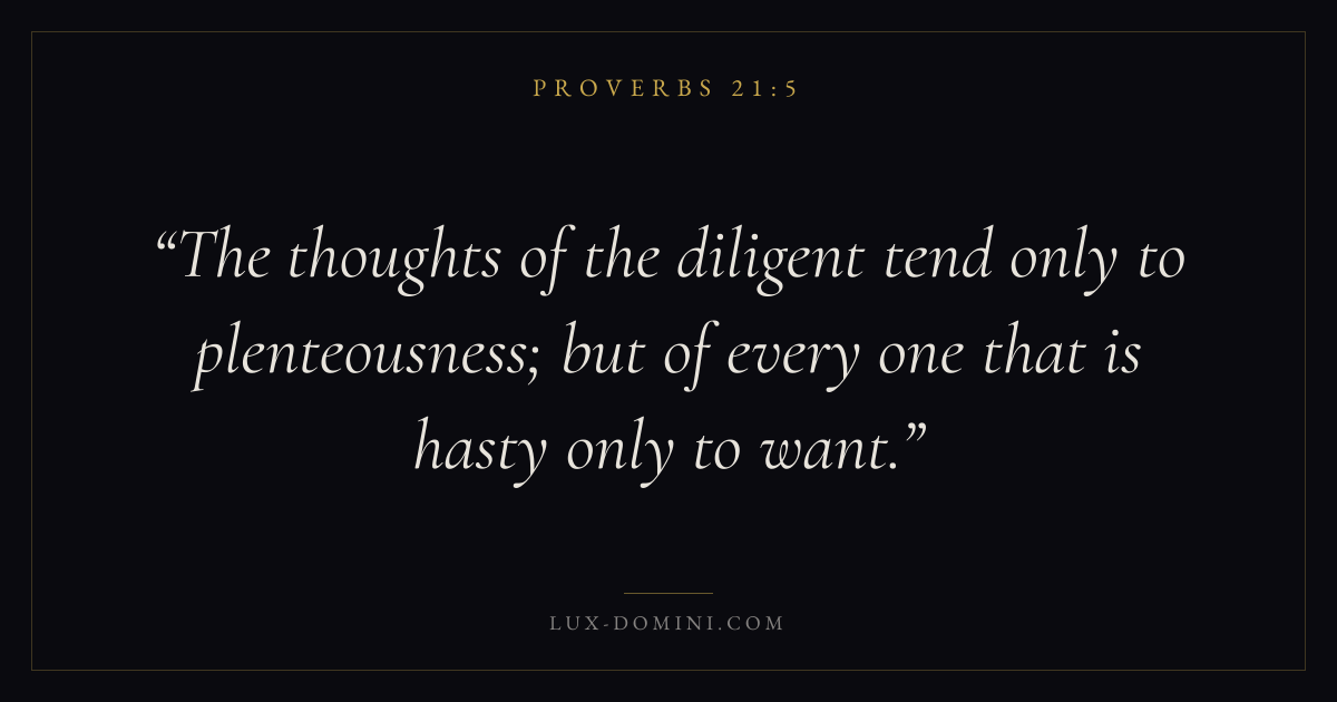 The thoughts of the diligent tend only to plenteousness; but of every one that is hasty only to want.