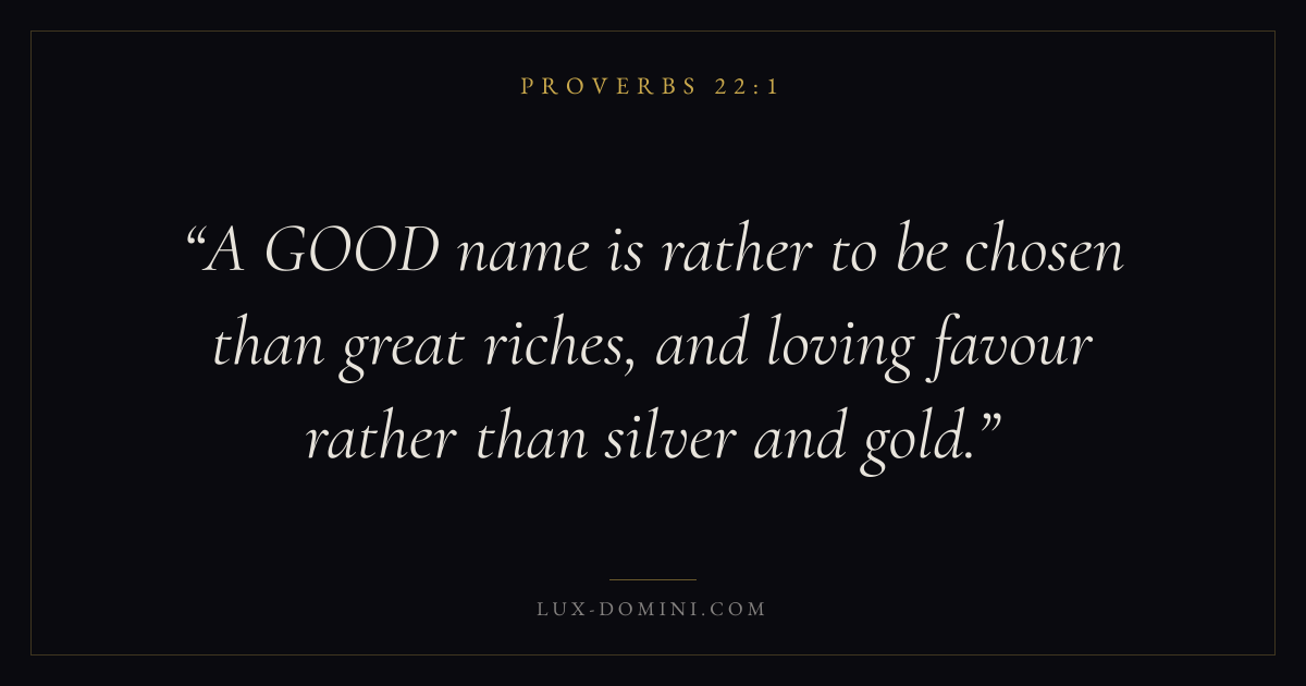 A GOOD name is rather to be chosen than great riches, and loving favour rather than silver and gold.