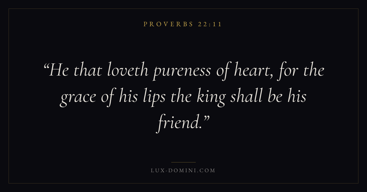He that loveth pureness of heart, for the grace of his lips the king shall be his friend.