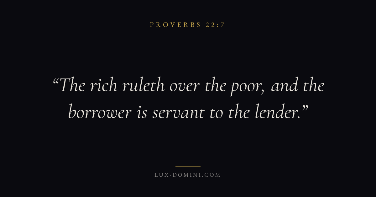 The rich ruleth over the poor, and the borrower is servant to the lender.