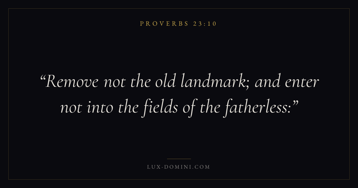 Remove not the old landmark; and enter not into the fields of the fatherless: