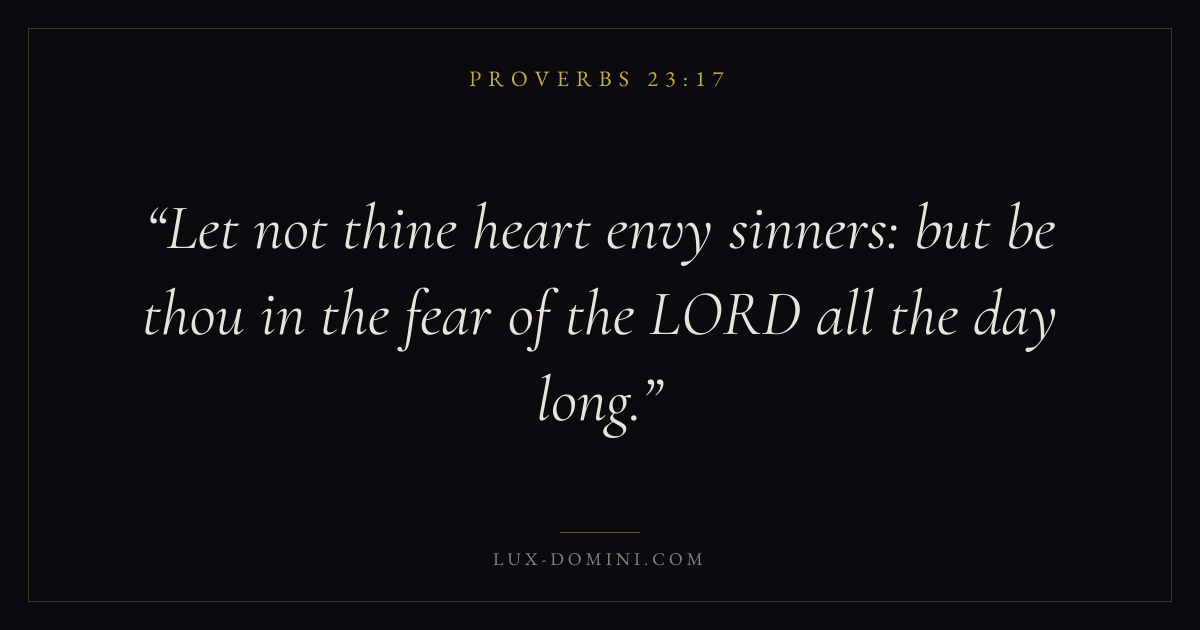Let not thine heart envy sinners: but be thou in the fear of the LORD all the day long.