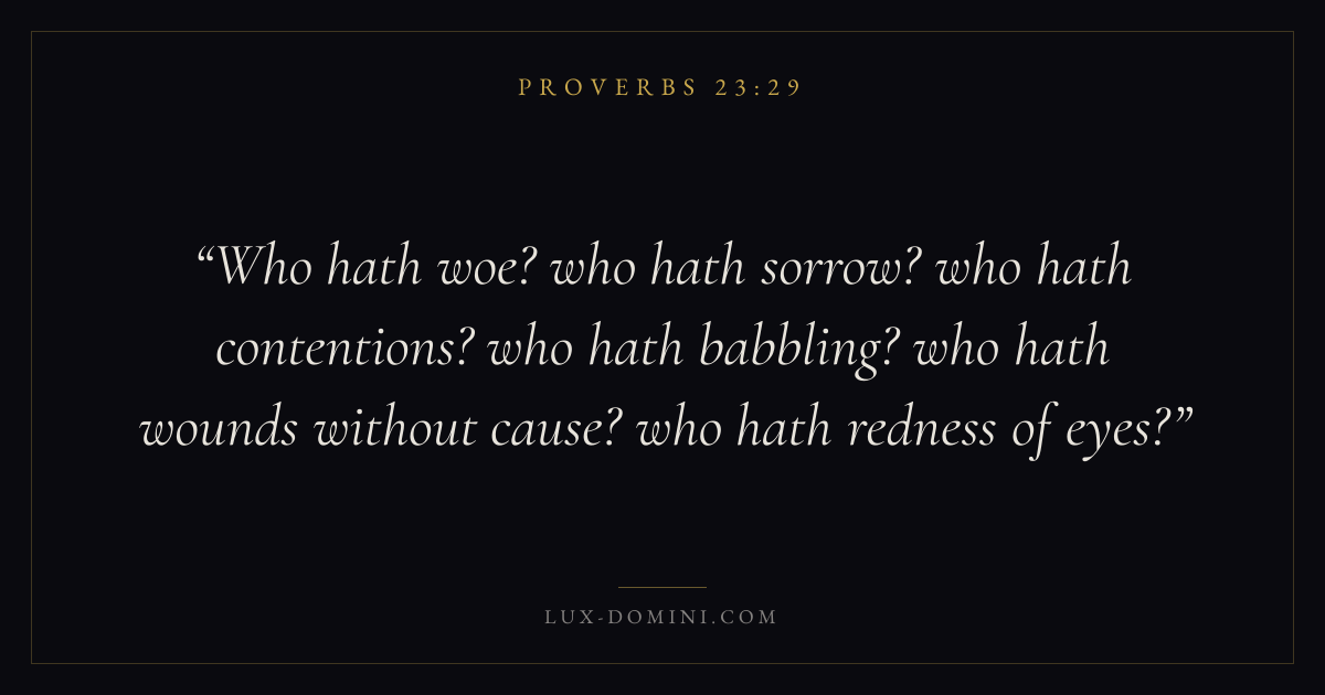 Who hath woe? who hath sorrow? who hath contentions? who hath babbling? who hath wounds without cause? who hath redness of eyes?