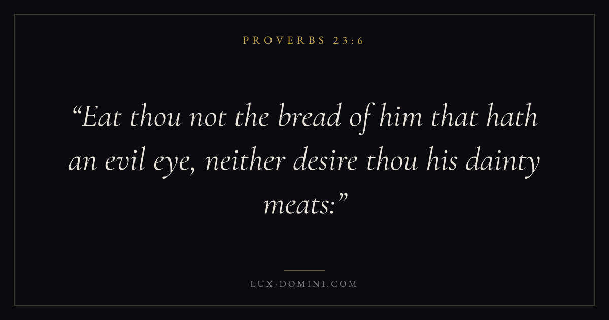 Eat thou not the bread of him that hath an evil eye, neither desire thou his dainty meats: