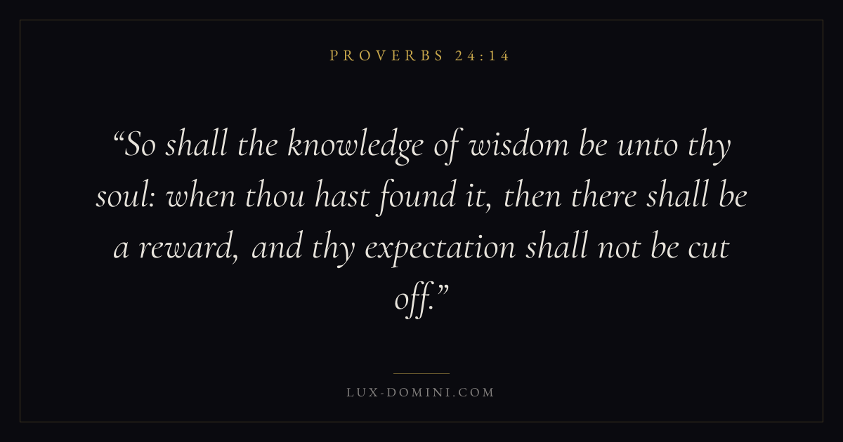 So shall the knowledge of wisdom be unto thy soul: when thou hast found it, then there shall be a reward, and thy expectation shall not be cut off.