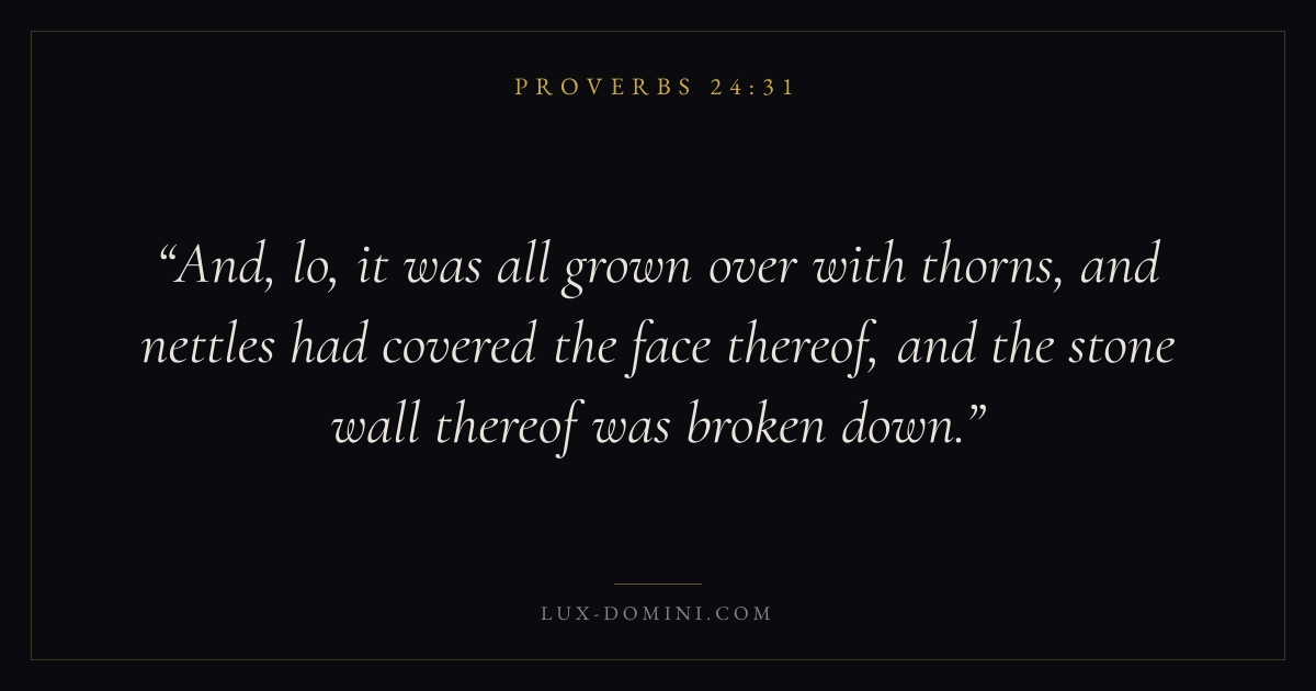 And, lo, it was all grown over with thorns, and nettles had covered the face thereof, and the stone wall thereof was broken down.