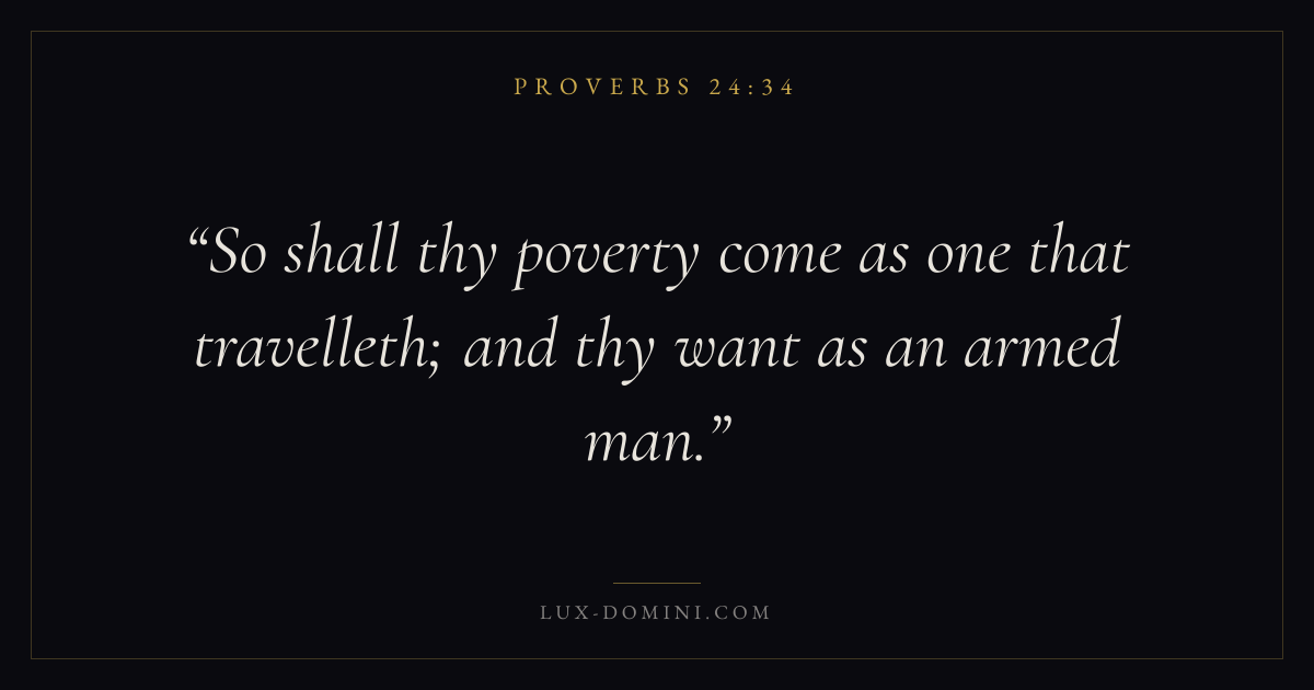 So shall thy poverty come as one that travelleth; and thy want as an armed man.