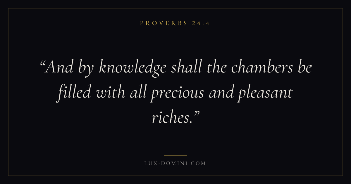 And by knowledge shall the chambers be filled with all precious and pleasant riches.