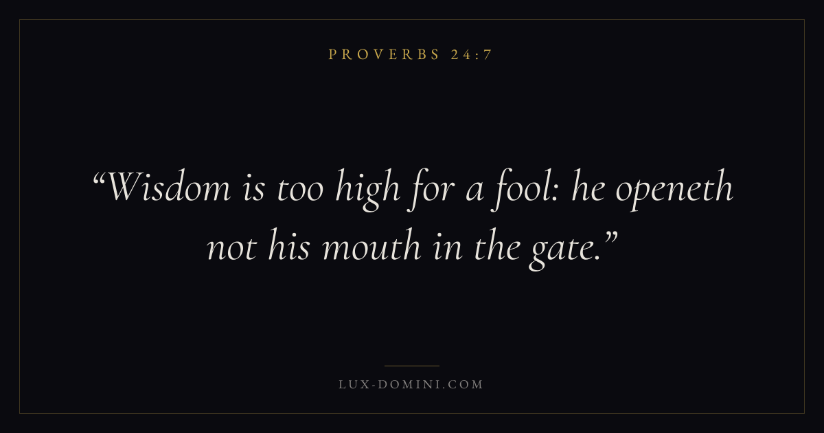 Wisdom is too high for a fool: he openeth not his mouth in the gate.