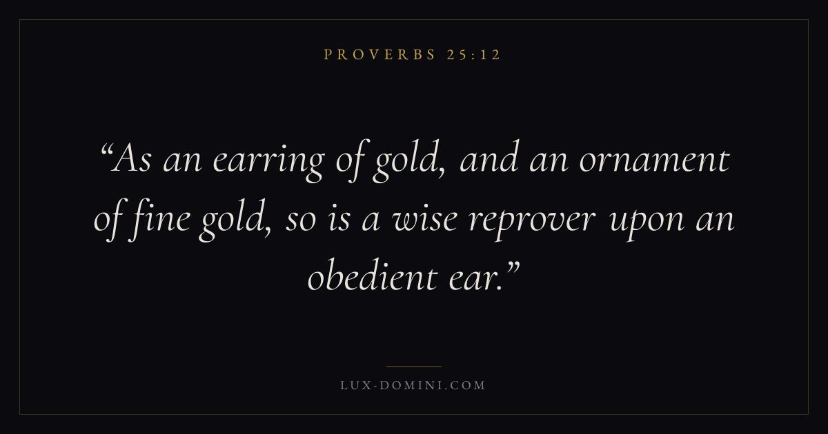 As an earring of gold, and an ornament of fine gold, so is a wise reprover upon an obedient ear.