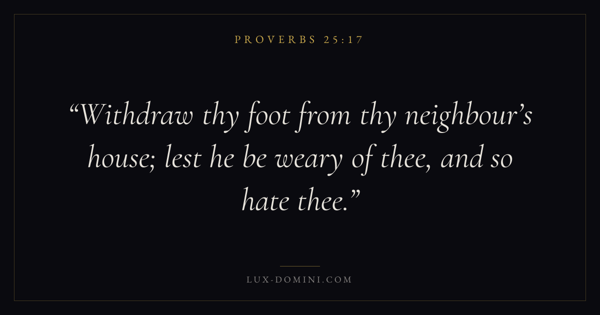 Withdraw thy foot from thy neighbour’s house; lest he be weary of thee, and so hate thee.