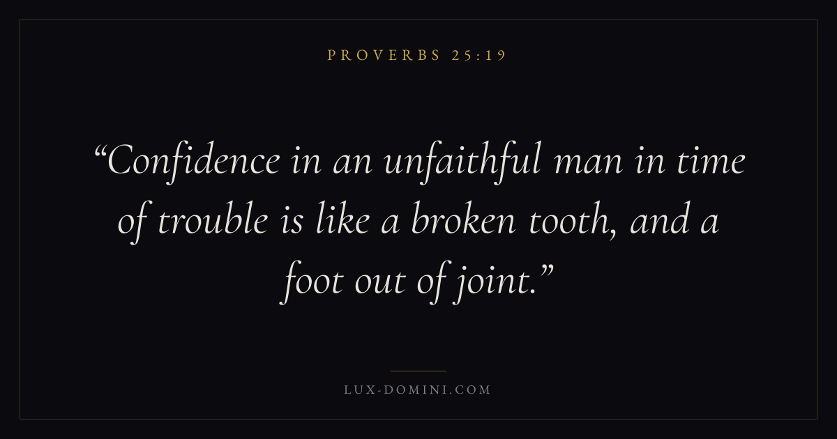 Confidence in an unfaithful man in time of trouble is like a broken tooth, and a foot out of joint.
