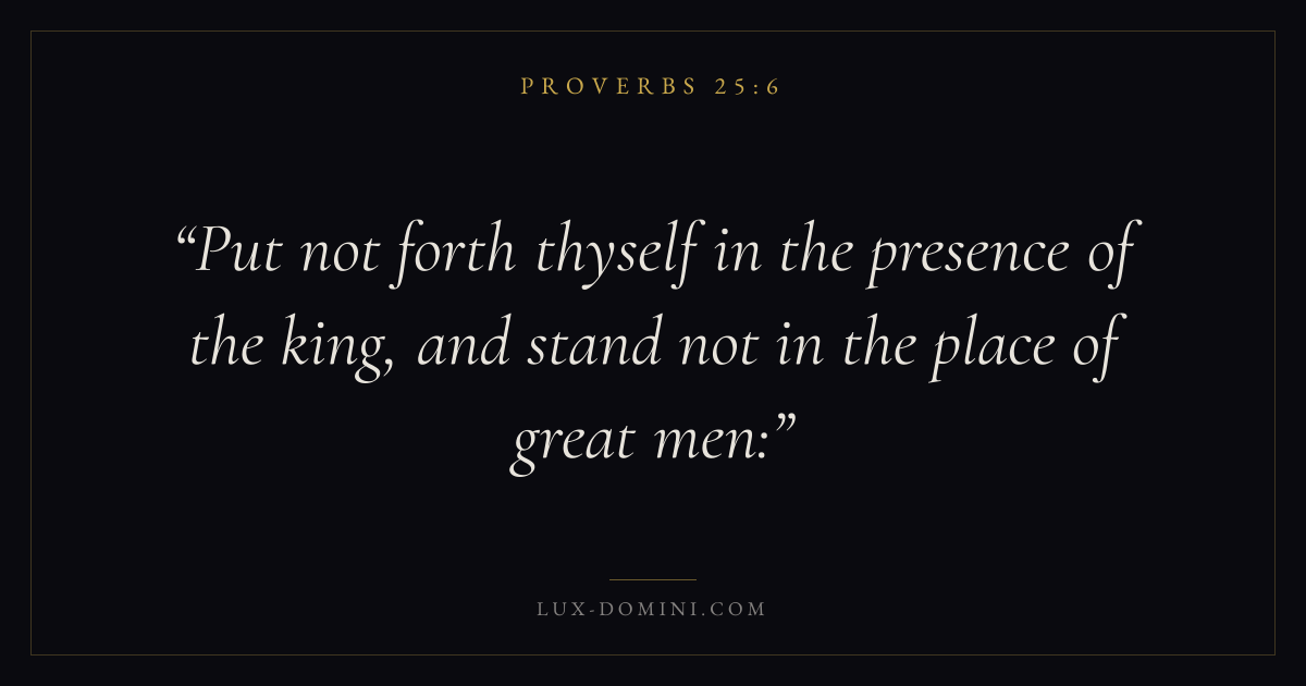 Put not forth thyself in the presence of the king, and stand not in the place of great men: